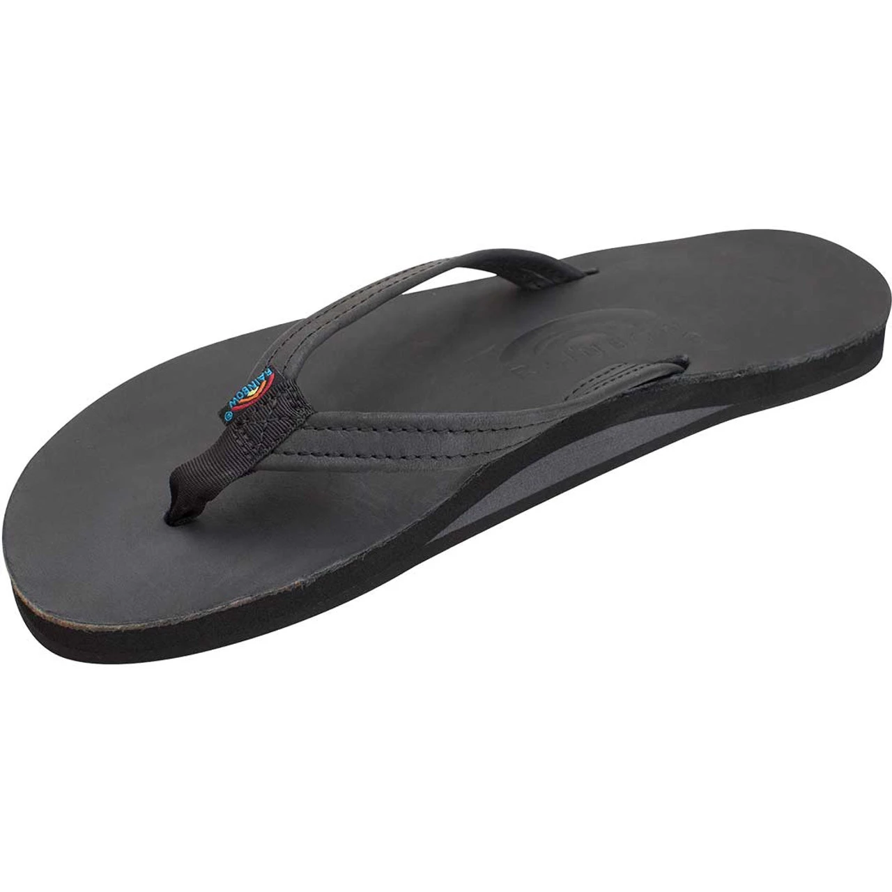 The single layer classic leather sandal is made of top grade nubuck leather; the top sole is embossed with the Rainbow® logo. This model comes with a 1/2″ narrow strap, also classic leather; it is double stitched, and the nylon toe piece is secured with a box X stitch, all using bonded nylon thread.